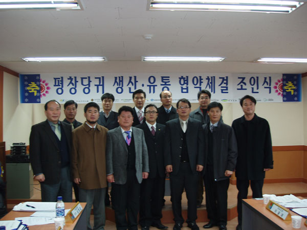 대영제약(주)외 12개 한방제약 회사와 (사)한국생약협회 평창군 지부는 한방 약초산업 발전을 위해 약초 재배와 가공, 유통에 공동체적 협력체결을 유지하면서 당귀 G.A.P 생산 유통 협약식을 체결하였습니다. |