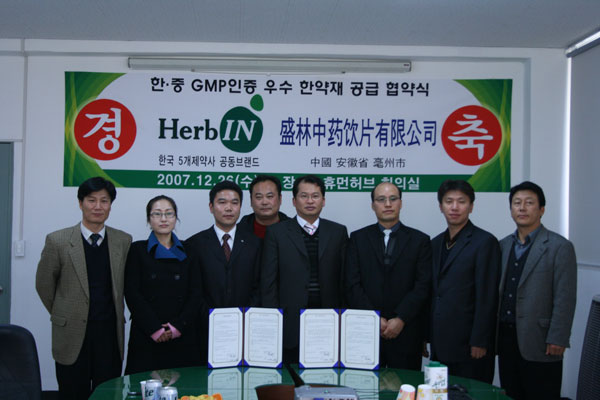 '내 몸에 안전한 허브' Herb In .. 대영제약(다우림) 등 5개제약은 한약재의 안전성 확보와 유통한약재의 기준을 수립하여 공동구매, 공동판매의 형식으로 열악한 한약재시장에서 안전성과 품질을 보증 할 수 있는 한약재를 공급하겠습니다. 07년 10월부터 수입 한약재 기준을 위해 5개제약 임원들이 중국 생산지를 공동 방문하여 수입한약재의 안정성과 품질기준을 선정하였고 -> 07년 11월 샘플을 직접 들여와 5개제약의 실험실에서 동시에 검사를 진행하여 -> 5개제약에서 적합 판정이 난 제품에 한해서 수입, 수입 진행 중 입니다. 이러한 수입 한약재 품질기준을 근거로 그 동안 문제시 되었던 수입 한약재의 안전성과 품질에 대한 기준으로 한의사분들의 마음의 짐을 덜 수 있을 것 같습니다. 또한 5개제약 공동판매는 -> 공동구매로 이루어지는바 구매단가를 합리적으로 제시 받을 수 있어 -> 향후 한약재의 가격 합리화에 일조 할 수 있어 한의원 경영적인 면에서도 도움이 될 수 있을 것 입니다. ▼. 2007년 12월 26일 水. 휴먼허브(회의실)에서 협약식을 가졌습니다. 허브인은 국내 한약제조 회사 중 독자적인 실험실을 보유한 업체들이 뜻을 모으고, 한의사협회의 검증을 받아 제조 및 유통하고 있는 5개 제약(대영제약, 휴먼허브, 광명당, 금강, 대효)의 공동브랜드입니다. 허브인의 목표는 한약재의 실질적인 안정성 확보를 위해 -> 한약재의 생산지에서 -> 철저한 관리 -> 5개제약 실험실에서 -> 철저한 검사 -> 품질 기준을 마련 -> 품질이 보증된 한약재를 -> 한의원까지 공급하는 것입니다. 이제 여러분도 한약재 브랜드화 시대를 맞이 했습니다. |