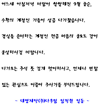 | 작성자 | 다우림 | 작성일 | 2009.09.18 오후 4:37:30 |