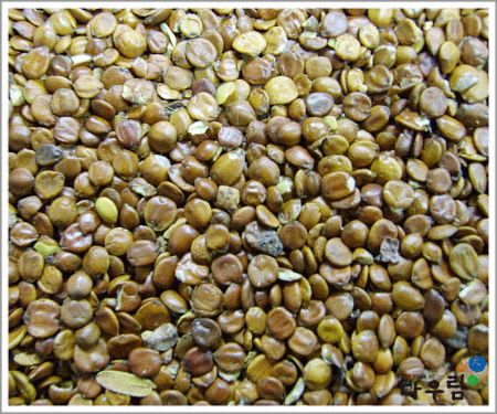 약재의 형태는 난원형을 이루고 길이 6~9mm, 너비 4~6mm, 두께 2~3mm 정도로 바깥 면은 황갈색~ 적갈색으로 매끄럽고 광택이 있고, 약간의 기름 냄새가 있으며 맛은 부드럽다.