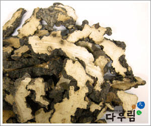 이 약은 고르지 않은 덩어리 모양이며 길이 5~10cm이다. 바깥면은 회갈색~흑갈색을 띠고 움푹 패인 듯한 자국과 거친 주름이 많고 꺾어지기 쉬우며, 꺾은 면은 약간 연한 코르크모양으로 거의 흰색~엷은 갈색을 띤다. 안쪽에는 흰색의 얼룩모양이 있고 질은 가볍다.