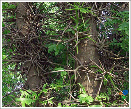 이 약은 가시로 되어 있으며 몇 개로 갈라져 있고 길이 5~15cm로 기부의 지름 8~12 mm이고 끝은 뾰족하다. 갈라진 가시의 길이는 15~70 mm 때로는 다시 갈라져 작은 가시로 되어 있다. 바깥면은 적자색~적갈색이며 가시 끝 부분은 적갈색으로 광택이 있으며 가는 주름이 있다. 질은 단단하고 쉽게 꺾어지지 않는다.