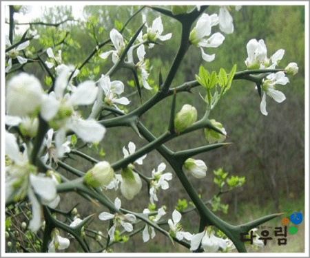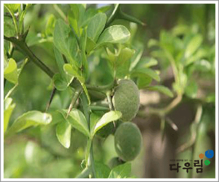 탱자나무(산초과)의 익지 않은 열매를