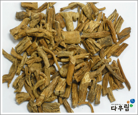 이 약은 원주형을 이루고 윗부분은 거칠고 아랫부분은 매끈하다. 바깥면은 회황색~황갈색으로 세로 또는 가로의 홈이 있다. 근두부는 팽대하며 여러개의 뿌리가 붙어 있고 짧은 섬유상의 유관속이 남아 있다. 질은 단단하면서도 부스러지기 쉬워서 꺾어지기 쉽다. 꺾은면의 피부는 황색~황갈색이고 목질부는 황색이다.