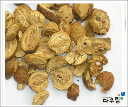 이 약은 구형~난형으로 지름 10~15 mm이다. 바깥면은 황갈색이며 광택이 있고 주름이 나 있다. 가로 자른면은 엷은 황색이며 4~5실로 나뉘었고 그 안에 씨가 1개씩 들어 있다.