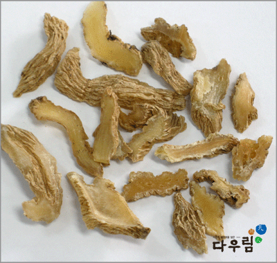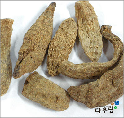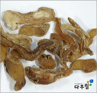 이 약은 약간 구부러지고 편압된 원주형~방수형이며 길이 5~15cm, 너비 2~5cm, 두께 1~2cm이다. 바깥면은 엷은 황백색~황갈색이고 불규칙한 세로주름과 돌림마디가 있다. 질은 단단하고 꺾은면은 황갈색~흑갈색이며 광택이 있고 각질 모양이나 때때로 속이 빈것도 있다