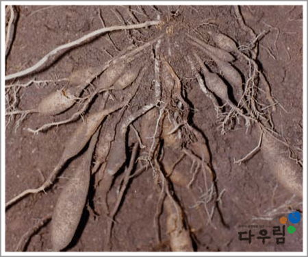 천문동(백합과)의 코르크층을 벗긴 덩이뿌리이다.