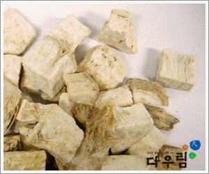 이 약은 고르지 않은 원주형으로 길이 5~10 cm, 지름 3~5 cm이나 때때로 세로로 쪼개져 있다. 바깥면은 엷은 황색이며 갈색을 띤 황색의 불규칙한 유관속이 뻗쳐있다. 꺾은면은 엷은 황색이고 약간 섬유성이다.