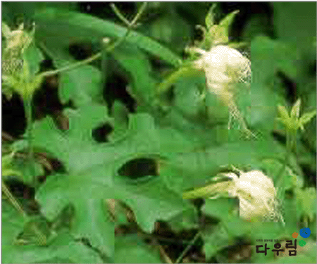 노랑하늘타리(오이과)의 피층을 벗긴 뿌리.