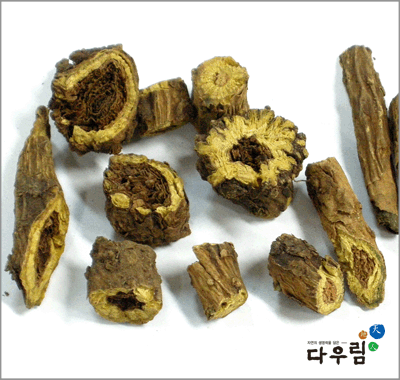 이 약은 원주상~반관상 또는 평관상을 이루며 바깥면은 황갈색을 띠고 조잡하고 뚜렷한 세로주름이 있고 군데군데 곁뿌리의 자국 및 갈색의 주피 파편이 남아 있다. 윗끝에는 줄기의 자국 또는 줄기의 잔기가 붙어있다. 묵은 뿌리에서는 목부가 썪어서 흑갈색으로 되고 때때로 속이 비어 있다. 질은 단단하고 부서지기 쉽다. 꺾은면은 황색이고 섬유성이다.