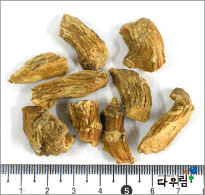 뿌리 줄기를 건조한 것.