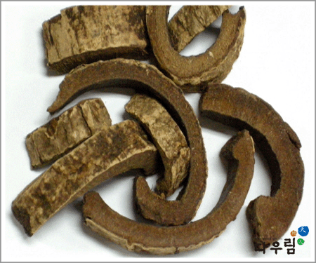 이 약은 판상 또는 반관상의 피편으로 두께 2~7mm이다. 바깥면은 회백색~회갈색을 나타내고 조잡하나 때로 코르크층이 박리되어 적갈색을 나타내는 것도 있다. 안쪽면은 담갈색~어두운 자갈색이며 절단면은 매우 섬유성이며 담적갈색~자갈색을 나타낸다.
