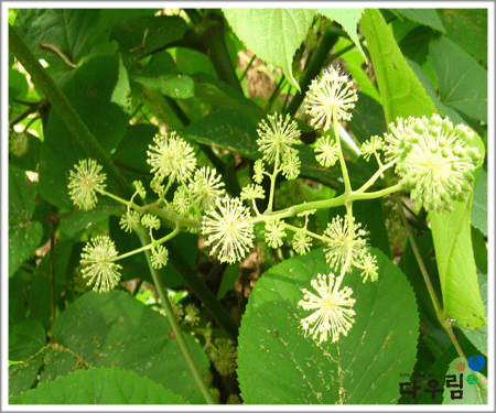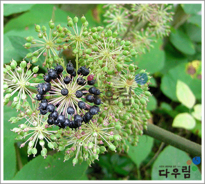 식물의 성상을 살펴보면 오갈피과의 여러해살이풀로서 높이 150cm정도 안팎이고 꽃을 제외한 전체에 짧은 털이 드문드문 나 있다. 7~8월에 둥근 꽃차례의 연한 녹색 꽃이 피며 꽃은 지름이 3mm정도이고 열매는 9~10월에 검은색으로 익는다.