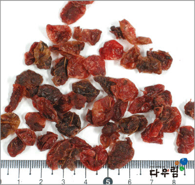 이명으로는 산수육(山茱肉), 석조(石棗), 기실(鬾實) 등으로 불린다.