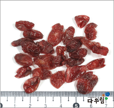 한약재의 형태는 편압된 긴 타원형을 이루고 길이 15~20mm, 너비 1cm이다. 바깥면은 어두운 적자색 ~ ·어두운 자색을 띠며 윤이 나고 거친 주름이 있다. 과육에는 씨를 빼낸