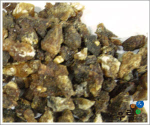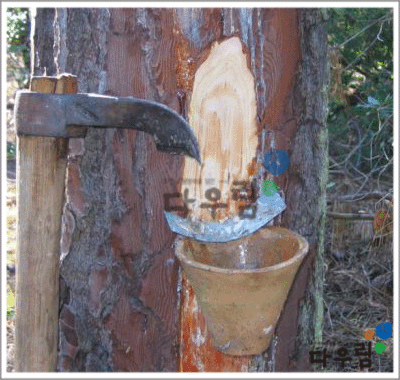 받아서 나오는 수지를 건조한 것.