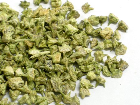 이 약은 5개의 작은 열매가 모여서 5각 별모양이며 5개의 분과로 되어 있고 지름 6~10 mm 이고 때로는 각 분과가 떨어져 있다. 바깥면은 회록색~회갈색을 띠며 각 분과의 뒷면은 융기되었으며 2개씩의 가시가 나 있고 큰 가시는 3~7 mm, 짧은 가시는 2~5 mm이다. 능선 위는 많은 작은 돌기가 있고 질은 단단하다. 절단면은 백색~황백색으로 지방질이 있다.