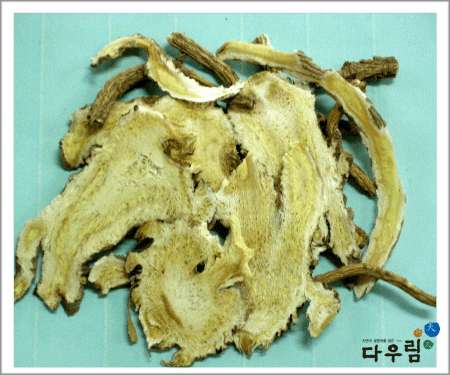 굵고 짧은 주근의 윗부분에 줄기 및 잎의 잔기가 남아 있으며 바깥면은 엷은 황갈색~흑갈색, 신의 절단면을 보면 황백색, 마른 뿌리는 잘 부러지며 특이한 냄새가 있고 맛은 약간 달면서 쓴 맛이 강하다.